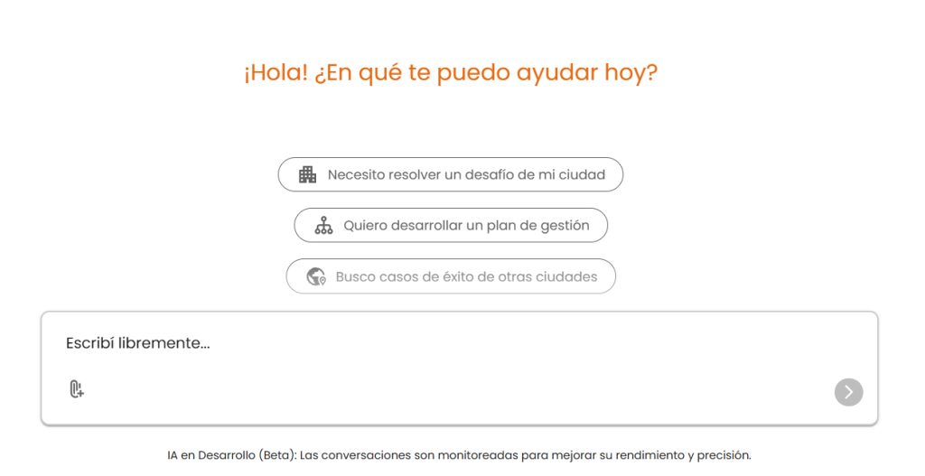 - Facilitar el acceso a conocimiento especializado. Es capaz de procesar documentos extensos, normativas y reportes para resumirlos en información clara y concisa, ahorrando tiempo valioso en investigación. Su entrenamiento específico en latinoamérica, gobiernos locales, gestión de ciudades, diseño de políticas públicas e impacto público garantiza una relevancia sin igual.